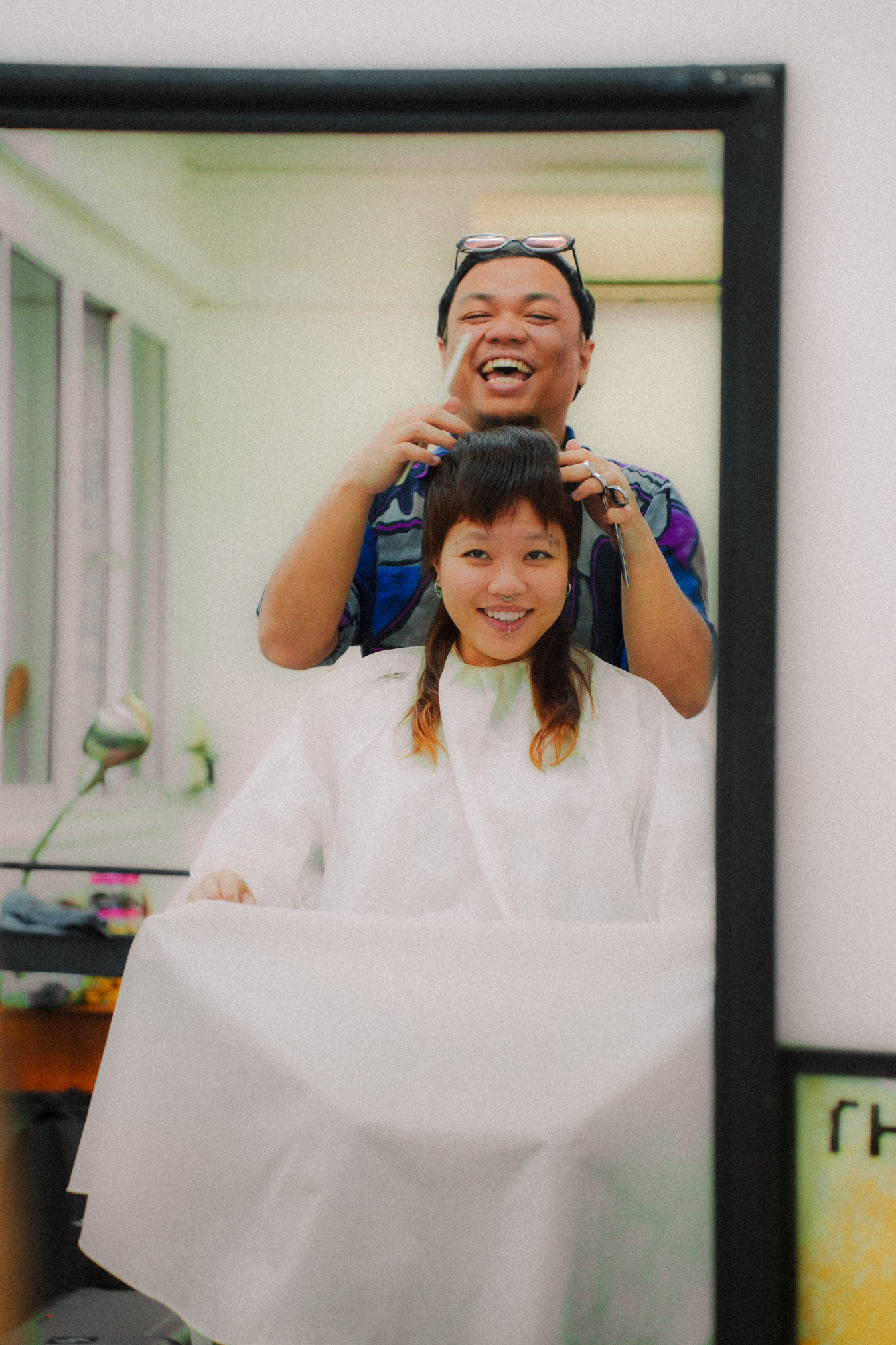 Their success, however, comes down to more than just technical skill; it’s about the intentionality they bring to their clients. The couple treats each client relationship much like their own partnership, building upon honesty and conversation. When a client shows them a reference photo, they don’t just say okay; they discuss what will or won’t work, preferring to be truthful rather than rushing someone through the cut. For them, a good haircut is the baseline, but the trust built in that seat is what keeps people coming back, to the point where clients don’t even have to look in the mirror to know that Akid and Ting have done a good job. “Sometimes my clients will sit down and they won’t even have to explain what they need,” Akid muses. “The most they’ll say is ‘the usual’ then we’ll start chatting, and when I’m done and want to show them the haircut from the back, they’ll say ‘no need to show lah!’”