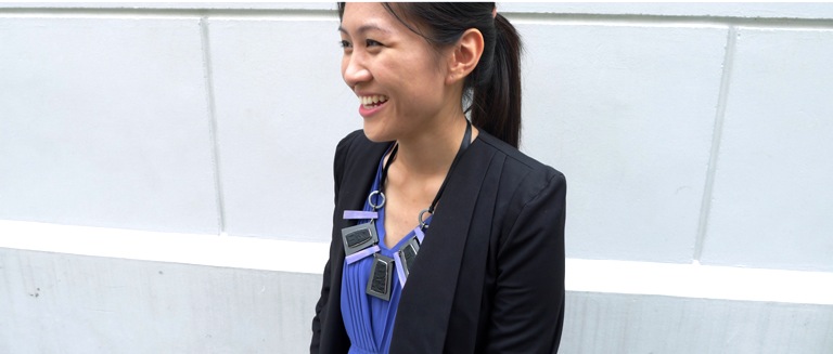 In an uplifting pop of blue, Jia Jia’s simple cocktail dress and jacket works. Here, she demonstrates the transformative wonders of a statement accessory in enhancing what would have been a pretty typical get-up. With just the right amount of colours and details, she proves how one can adhere to the work wear protocol without compromising on some fun. Jia Jia describes herself as a ‘people person’ and enjoys ‘talking, chilling and going to parties’.