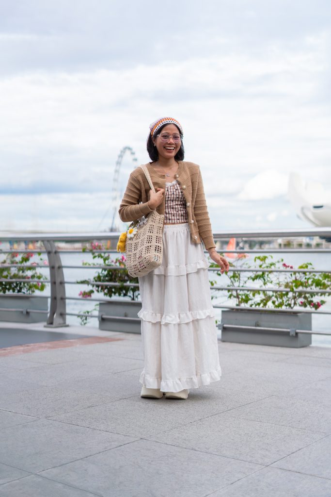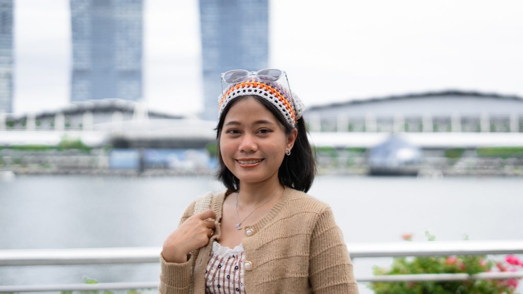 She was snapping photos of the Singapore skyline with her sister when we approached her, and despite the language barrier between us, she shyly accepted our request to photograph her. In between shots, she revealed that she was here for the first time on a family holiday, and that they were just about to wrap up their three-day trip and head home to Chon Buri, Thailand, a province set on the country’s eastern Gulf of Thailand coast. There, she would resume working as a nurse, while planning her next getaway in her free time.