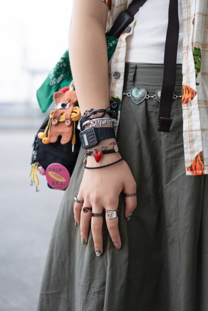 Another thing that I collect is plasters (i.e. bandages), and I’ll always have a stash of them in my bag, so if people need one, I can pull them out and be like “which one do you want?” (laughs) In this bag I have dinosaur ones, Sanrio ones, and colourful ones.
