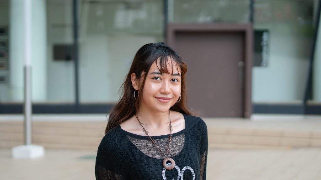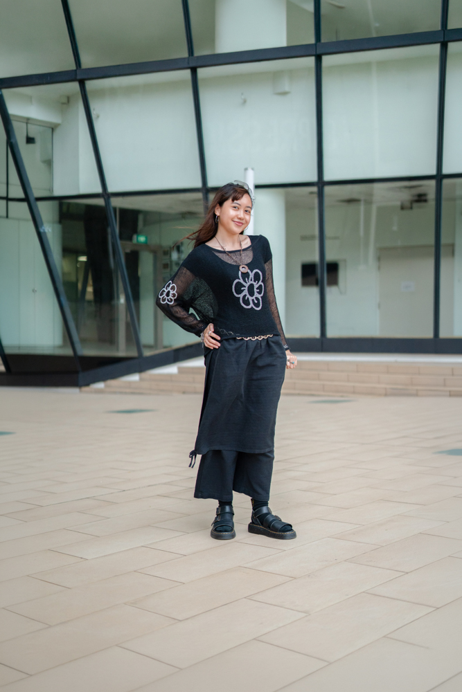 I’m Zafirah, and I’m studying design communications in LASALLE, though I actually started off as an IT student. Today, I’m in my “I don’t know what to wear but I need to look like I dressed up” outfit (laughs). I usually always wear this when I’m running late or I’m too tired, so it’s kind of my staple look that I always show up to school in. I just wear a bodysuit underneath and throw something over, like a cardigan or sweater.