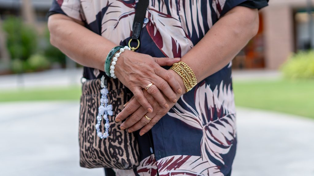 “Should I go and get a nice dress to change into for you?” she joked in between shots, as we had her striking pose after pose for the camera. As it turns out, she was only here for a brief layover from the Philippines, before jetting off for an extended family holiday in Vietnam. Her son and daughter-in-law, on the other hand, have been living and working in Singapore for the past three years, while she jets to and from to visit the pair and to travel with the family frequently.
