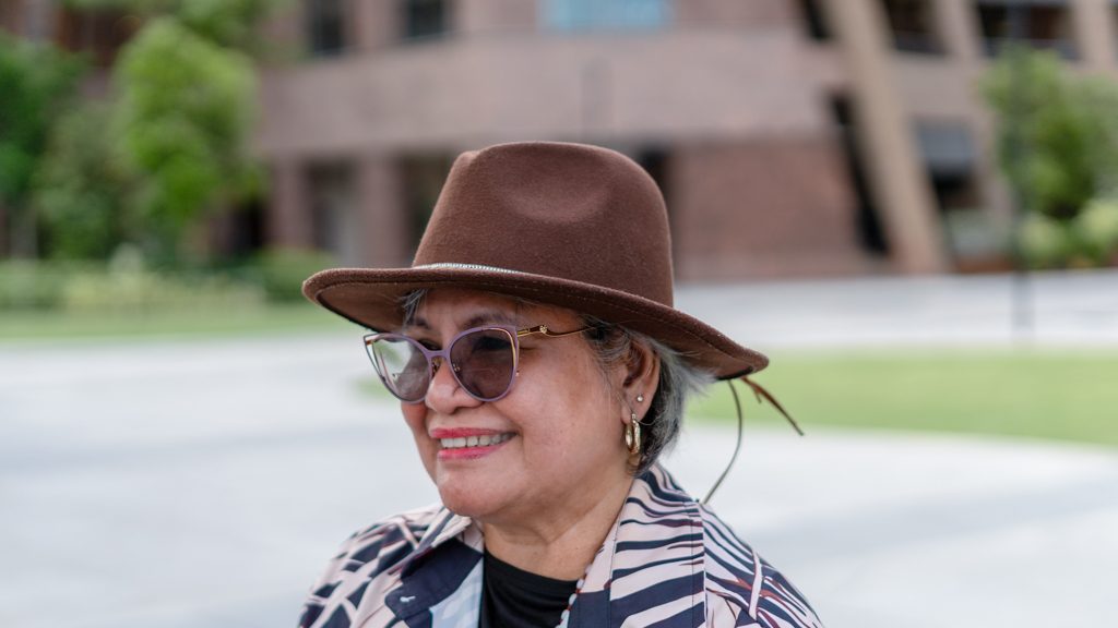 Amidst the rare spot of peace and quietness at the Esplanade on a lazy weekday afternoon, the sounds of chatter and hearty laughter caught our attention, and this was when we spotted Vicki, standing out in the midst of her large family with her funky glasses and cowboy hat. Of course, we knew we just had to speak with her and snap a few photos, and though initially hesitant, she was talked into it by her enthusiastic family, and thus, we commenced a quick but memorable shoot with the bubbly Vicki.